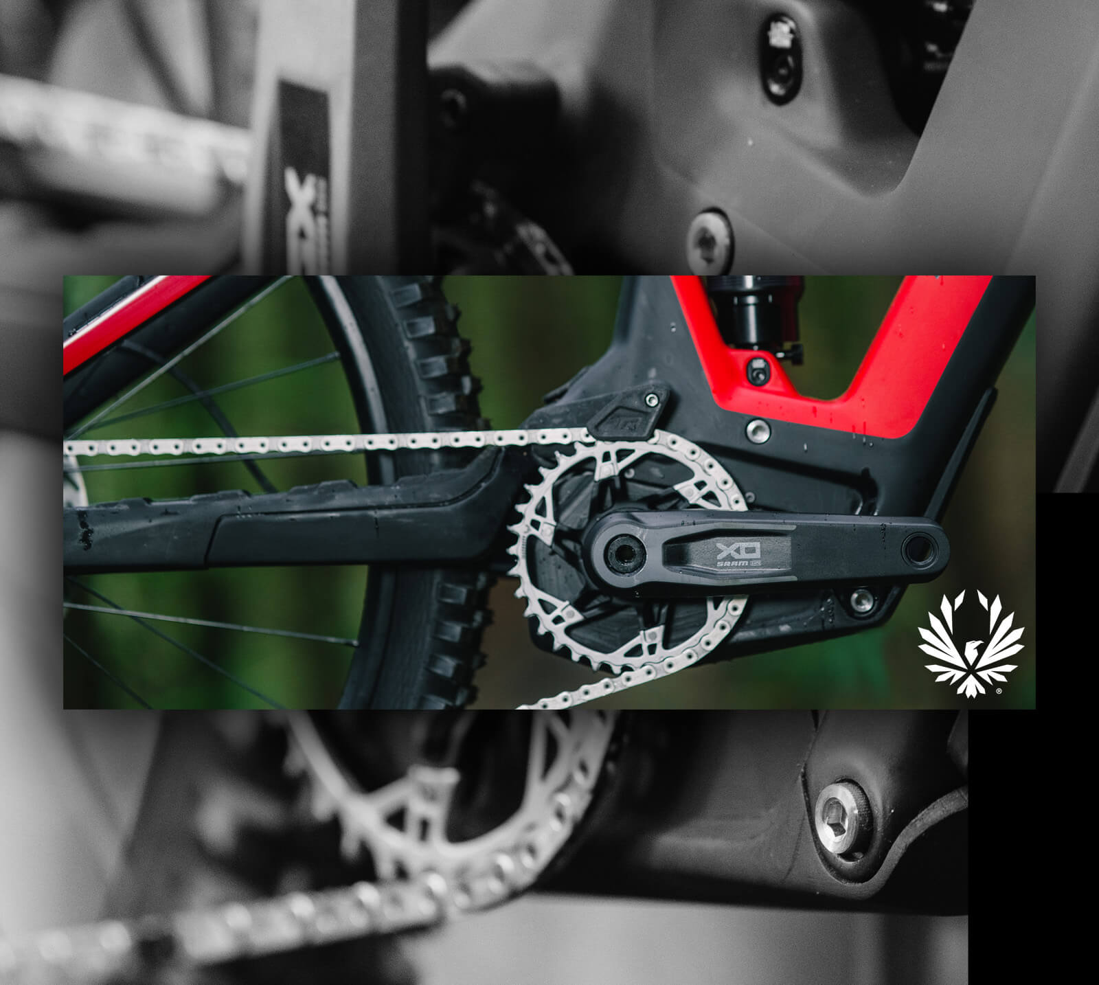 The Repeater Powertrain takes your eMTB experience to a whole new level. This system harmoniously integrates the most complicated moving parts on an eMTB to create a simple, worry-free, and exhilarating ride. With 170mm travel front and rear, user tuneable motor and shifting modes, and wheel size options, the Repeater PT is a groundbreaking eMTB designed to fulfill all of your powered riding dreams. Utilizing the 90nm Eagle Powertrain Motor by Brose, SRAM 720wh battery, SRAM T-Type AXS Transmission, and the SRAM Powertrain brain, the Repeater PT marks a giant leap in the integration of motor and drivetrain, allowing you to give your full attention to enjoying the ride while auto shift handles the rest.
